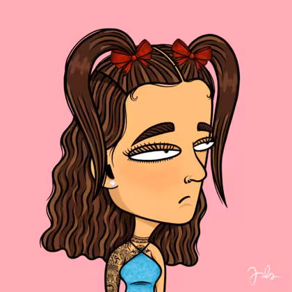 Collection Depressed Citizens Artist Juls Description ART. No team, no project, no future. Depressed Citizens is an urban & existential Art expression on Ordinals. In a parallel universe, "THEI" control us. DC unites against toxic society, encouraging critical thinking. 100% hand made collection that took Juls more than 6 months of daily work. Name Citizen#1710 Origin Caucasian non hispanic Gender Woman Necklace No Necklace Hat Red bow Mustache Beard No beard Glasses No Glasses Earrings Diamond earring Hair Style Long wavy with space ponytails Clothes Sky blue halterneck top Tattoo Maya tattoo Star Background Without stars
