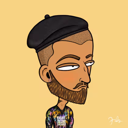 Collection Depressed Citizens Artist Juls Description ART. No team, no project, no future. Depressed Citizens is an urban & existential Art expression on Ordinals. In a parallel universe, "THEI" control us. DC unites against toxic society, encouraging critical thinking. 100% hand made collection that took Juls more than 6 months of daily work. Name Citizen#2251 Origin Asian & Pacific islander Gender Man Necklace No Necklace Hat Black beret Mustache Beard Garibaldis beard Glasses No Glasses Earrings Rook hoop Hair Style Shaved head Clothes Fight for your rights long-sleeve shirt Tattoo Dragon tattoo Star Background Without stars