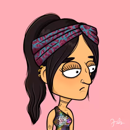 Collection Depressed Citizens Artist Juls Description ART. No team, no project, no future. Depressed Citizens is an urban & existential Art expression on Ordinals. In a parallel universe, "THEI" control us. DC unites against toxic society, encouraging critical thinking. 100% hand made collection that took Juls more than 6 months of daily work. Name Citizen#2216 Origin Caucasian non hispanic Gender Woman Necklace Gold layered necklace Hat Printed headband Mustache Beard No beard Glasses No Glasses Earrings Helix ring trio Hair Style High ponytail Clothes Love is love one shoulder crop Tattoo Rose tattoo Star Background Without stars