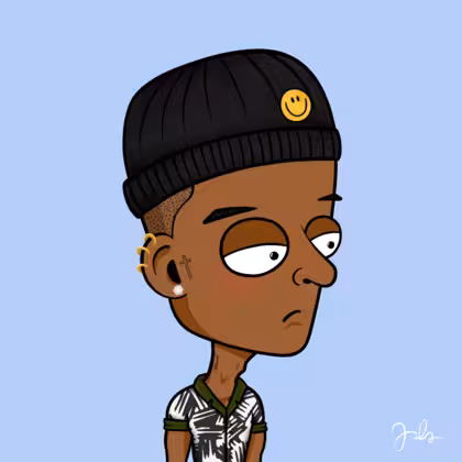 Collection Depressed Citizens Artist Juls Description ART. No team, no project, no future. Depressed Citizens is an urban & existential Art expression on Ordinals. In a parallel universe, "THEI" control us. DC unites against toxic society, encouraging critical thinking. 100% hand made collection that took Juls more than 6 months of daily work. Name Citizen#2246 Origin Hispanic Gender Man Necklace No Necklace Hat Smiley beanie Mustache Beard No beard Glasses No Glasses Earrings Helix ring trio Hair Style Shaved head Clothes Boardriders shirt Tattoo Blessed tattoo Star Background Without stars