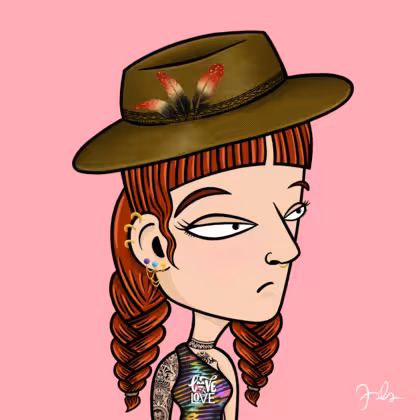 Collection Depressed Citizens Artist Juls Description ART. No team, no project, no future. Depressed Citizens is an urban & existential Art expression on Ordinals. In a parallel universe, "THEI" control us. DC unites against toxic society, encouraging critical thinking. 100% hand made collection that took Juls more than 6 months of daily work. Name Citizen#2372 Origin Caucasian non hispanic Gender Woman Necklace No Necklace Hat Fedora hat Mustache Beard No beard Glasses No Glasses Earrings Helix ring trio Hair Style Double braids with bangs Clothes Love is love one shoulder crop Tattoo Maya tattoo Star Background Without stars