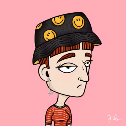 Collection Depressed Citizens Artist Juls Description ART. No team, no project, no future. Depressed Citizens is an urban & existential Art expression on Ordinals. In a parallel universe, "THEI" control us. DC unites against toxic society, encouraging critical thinking. 100% hand made collection that took Juls more than 6 months of daily work. Name Citizen#1357 Origin Caucasian non hispanic Gender Woman Necklace No Necklace Hat Smiley bucket hat Mustache Beard No beard Glasses No Glasses Earrings Star earring set Hair Style Short pixie with bangs Clothes Red stripe elbow-sleeve shirt Tattoo No Tattoo Star Background Without stars