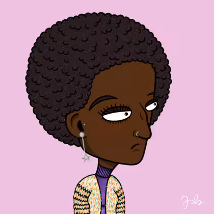 Collection Depressed Citizens Artist Juls Description ART. No team, no project, no future. Depressed Citizens is an urban & existential Art expression on Ordinals. In a parallel universe, "THEI" control us. DC unites against toxic society, encouraging critical thinking. 100% hand made collection that took Juls more than 6 months of daily work. Name Citizen#71 Origin African descendant Gender Woman Necklace No Necklace Hat No Hat Mustache Beard No beard Glasses No Glasses Earrings Star earring set Hair Style Afro Clothes Purple turtleneck sweater Tattoo No Tattoo Star Background Without stars